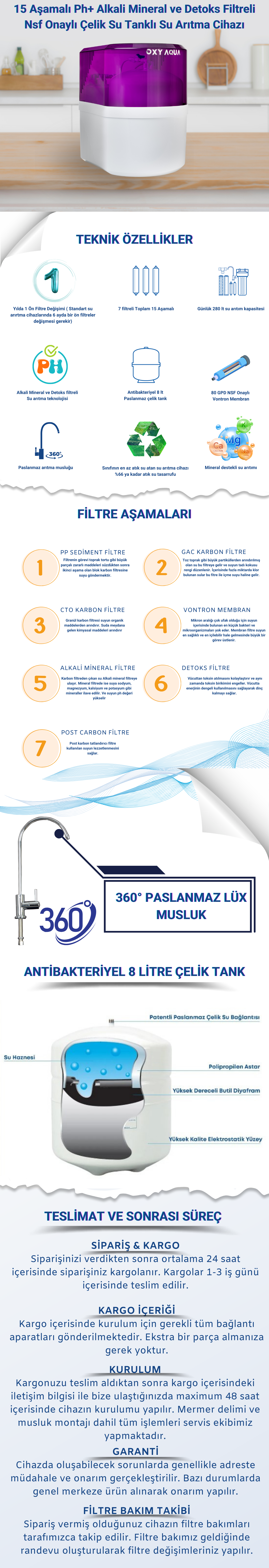 OXY AQUA 15 Aşamalı Detoks Filtreli Su Arıtma Cihazı